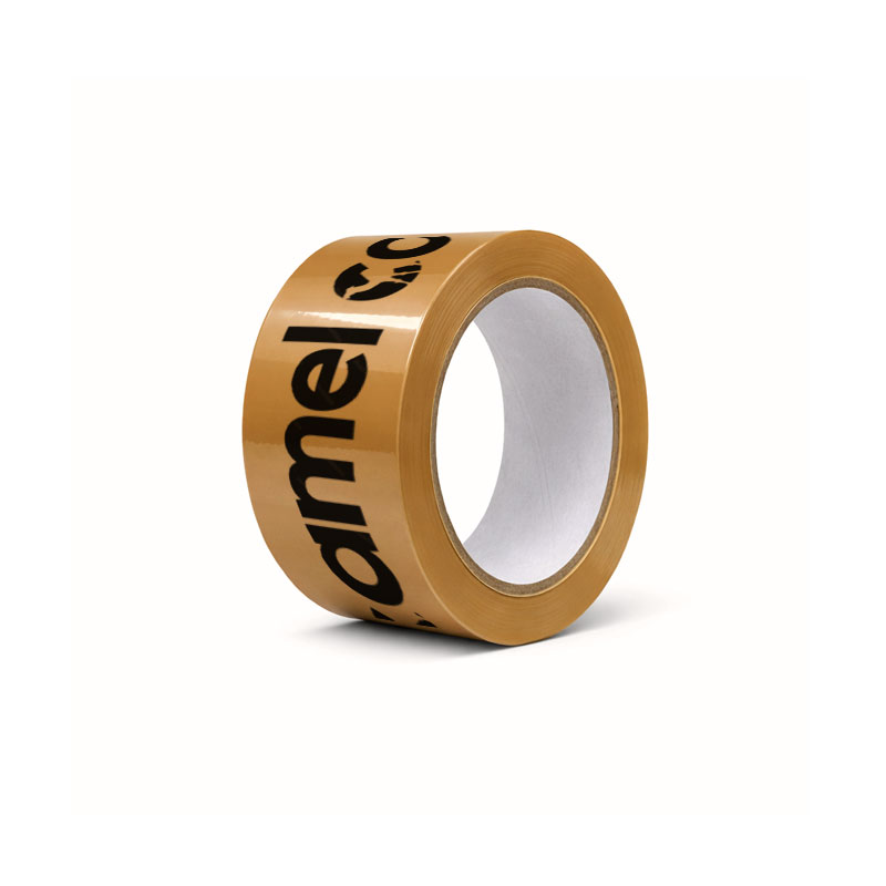 7030 is a premium packaging tape with a PVC-film backing and a natural rubber adhesive. Its PVC backing allows for a quiet unwind with greater tear and puncture resistance. It offers excellent performance on most types of cardboards and secures a safe closure. The natural rubber adhesive system is designed to show best results for applications on different kinds of surfaces. Foreground text and images can be printed in one or two colours on a single background colour. Standard tape colours are white, clear and tan, and custom background colours are also available.